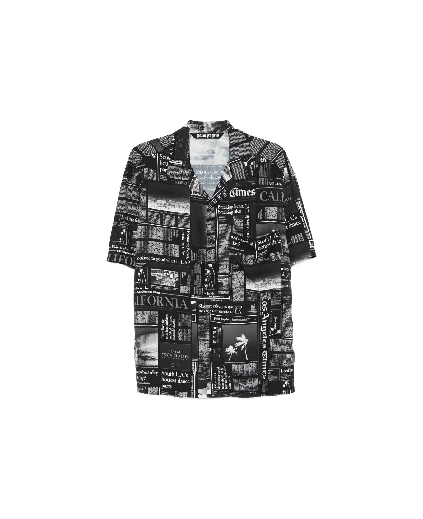 black and off-white newspaper print collared short sleeves button fastening revere collar Made in: Bulgaria Color: BLACK/WHITE Model number: PMGG00DF25FAB005