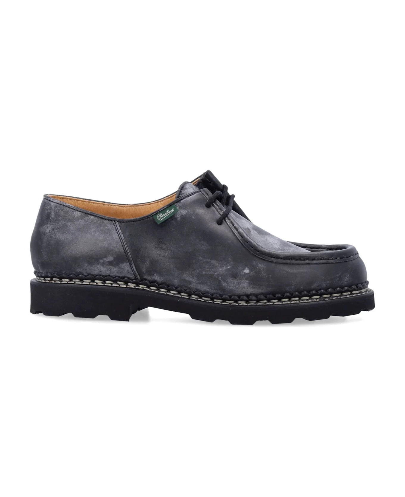 Michael Lace-up Derby Shoes By Paraboot. Featuring: Marble-effect Leather Upper Classic Moc-toe Stitching Design Lace-up Front Closure Durable Rubber Sole Cushioned Leather Insole Hand-stitched Detailing Composition: Upper, 100% calf leather sole, 100% rubber Made in: France Color: BLACK Model number: 715604BLACK