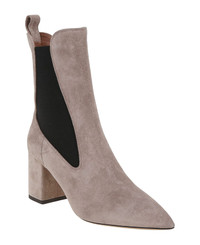 ANJA suede ankle boots by PARIS TEXAS. Pointed toe; elasticated side; tone-on-tone covered chunky heel (7cm). Made in: Italy Color: Taupe Size and fit: - Heel 7 cm Model number: PX1327XV003TAUPE