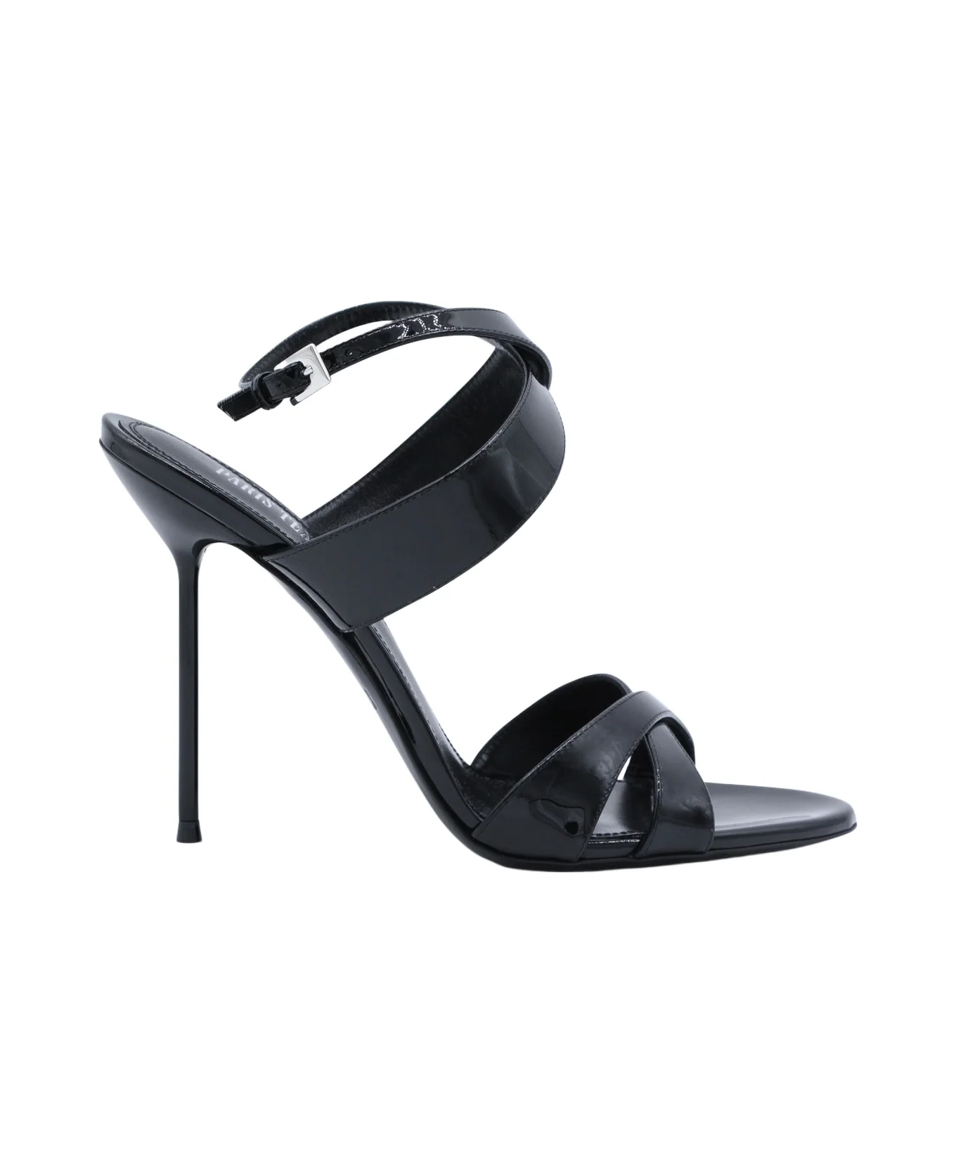 Black leather Lidia sandals 105 from Paris Texas featuring open pointed toe, adjustable ankle strap, silver tone hardware and stiletto heel. Composition: Upper, 100% Calf Bos Taurus Lining, 100% Goat Hircus Aegagrus Sole, 100% Calf Made in: Italy Color: Black Model number: PX1817XVN01BLACK