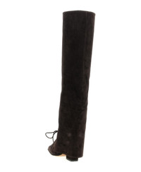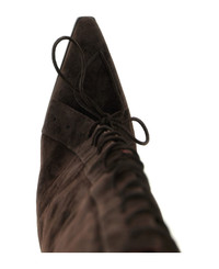 'Jane Fold Over Lace Up' suede boots with slightly squared toe, tube leg with gaiter and laces, Texan heel, leather sole. Composition: 100% calfskin leather (Bos Taurus) Made in: Italy Color: Brown Size and fit: - EU WOMAN - Heel: 10 cm Model number: PX1805XV003EBANO