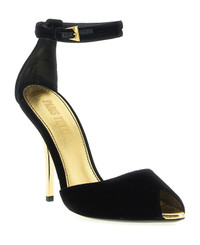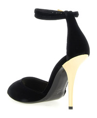 'Jessica' open-toe velvet sandals, double adjustable ankle strap, covered stiletto heel, leather sole. Composition: 65% viscose 35% cupro Made in: Italy Color: Black Size and fit: - EU WOMAN - Heels: 10.5 cm Model number: PX1755XVLVGBLACKGOLD