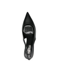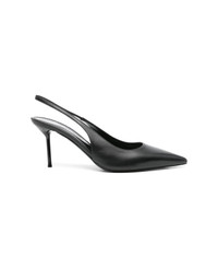 black calf leather patent finish pointed toe elasticated slingback strap branded footbed stiletto heel leather sole Composition: Calf Leather, 100% Made in: Italy Color: Black Size and fit: - W Heel x H x D cm handle 7 cm Model number: PX1635XNPP3BLACK