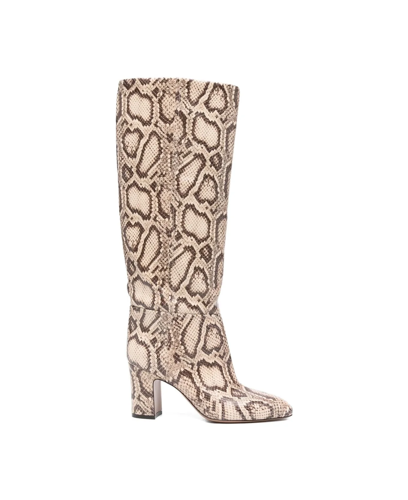 Paris Texas Boots Beige with python print, block heel, pointed toe, knee-high shaft, leather upper Composition: Upper, 100% Calf Bos Taurus Lining, 100% Goat Hircus Aegagrus Sole, 100% Calf Made in: Italy Color: Beige Model number: PX1683XPTDAPOWDER