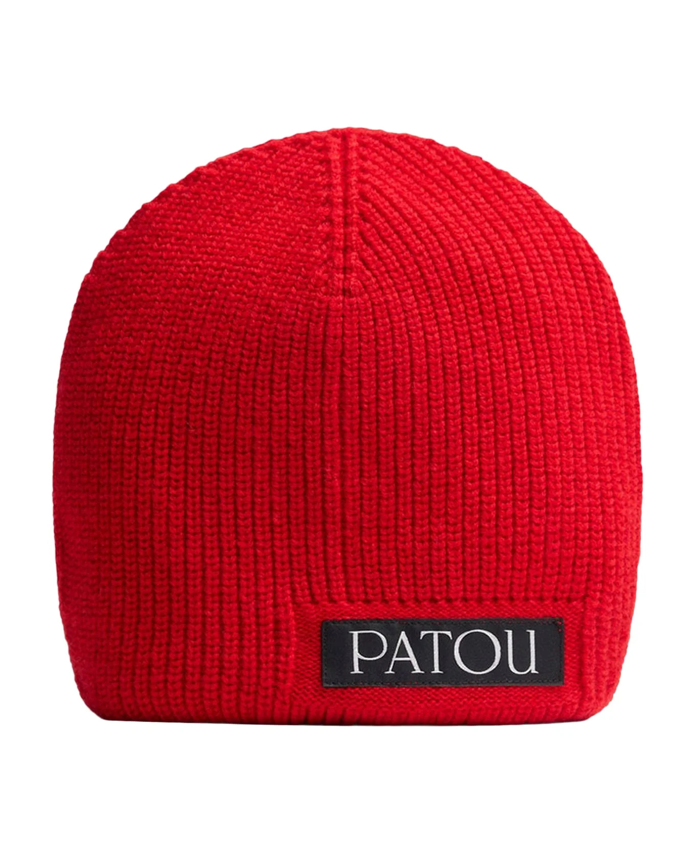 Beanie made from stretch wool blend Ribbed knit Patou logo label on the front Red Made in Portugal Composition: 87% wool, 10% cashmere, 2% polyamide, 1% elastane Made in: Portugal Color: Red Size and fit: - One size fits all. Model number: AC1028041313R