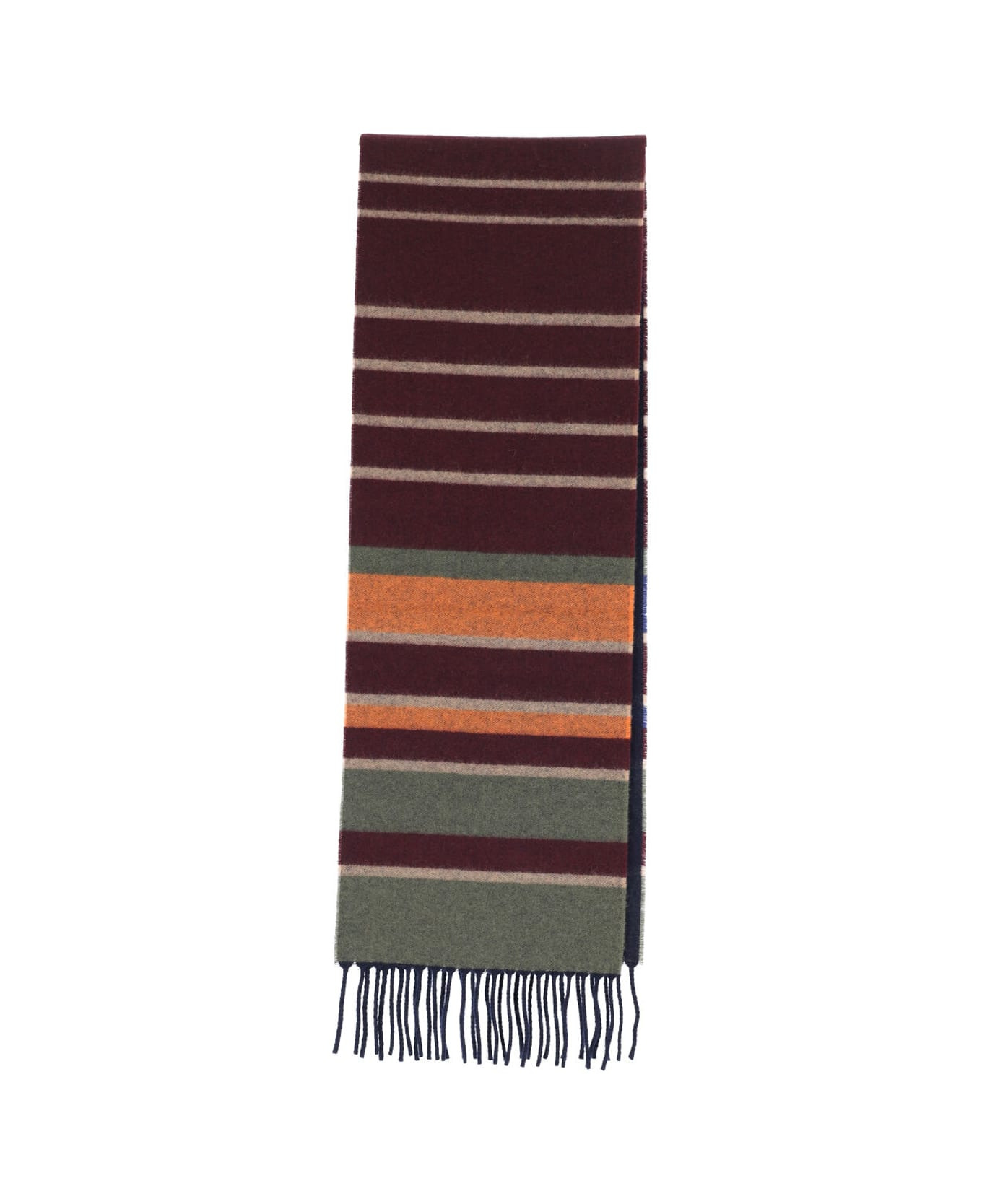 Paul Smith merino wool and cashmere scarf, multicolor, striped pattern, rectangular design, fringes on the bottom, label detail on the back. Composition: 90% Merino Wool, 10% Cashmere Made in: Italy Color: Multicolor Size and fit: - A 170 X L 30 cm Model number: 150CT71028