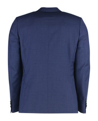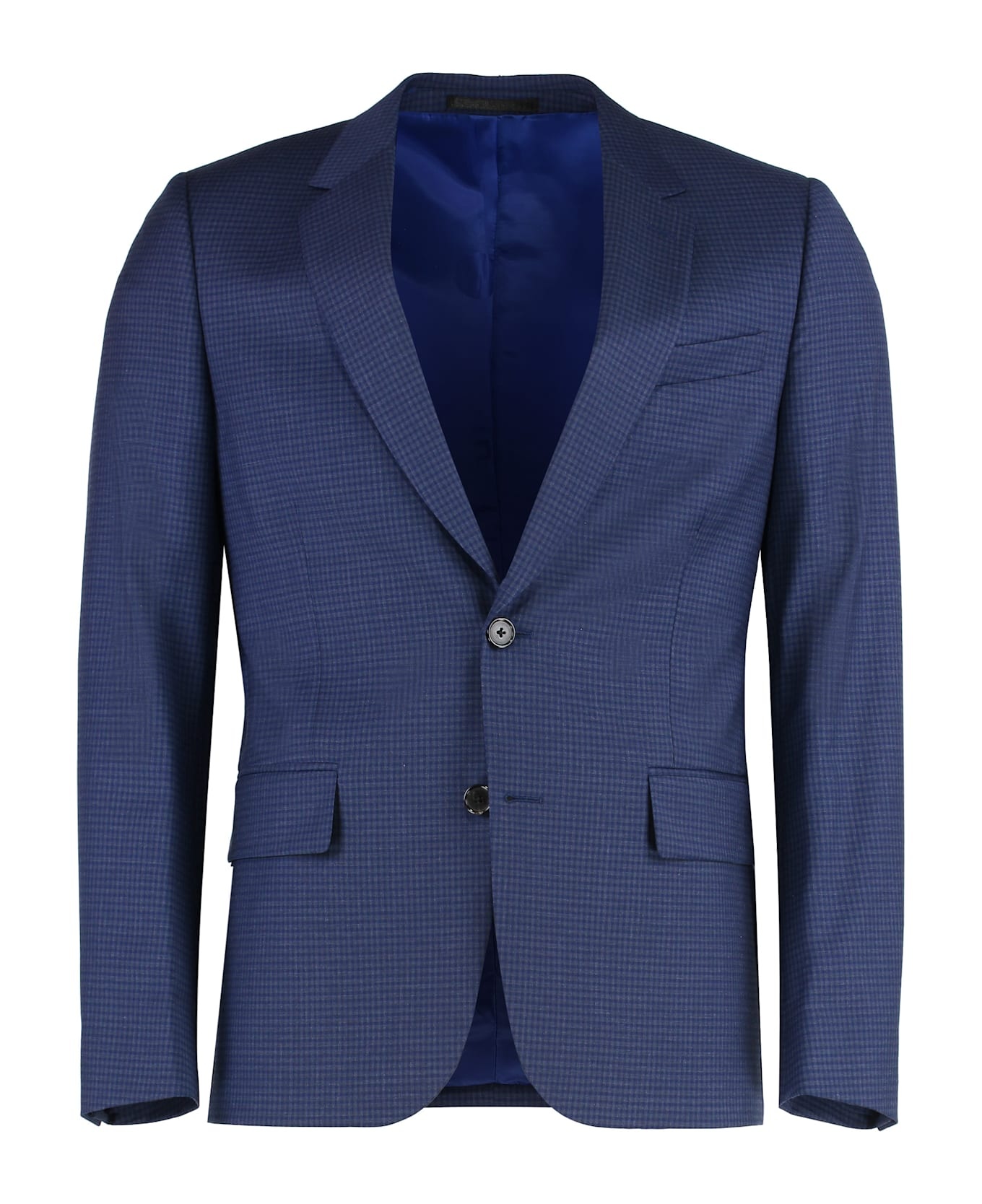 Single-breasted two-button jacket gingham motif padded shoulders two front flap pockets and chest pocket hem with double back slit trousers: belt loops two back buttoned welt pockets 100% wool Composition: 100% % Wool Made in: Italy Color: blue Model number: M1R1457L0204546