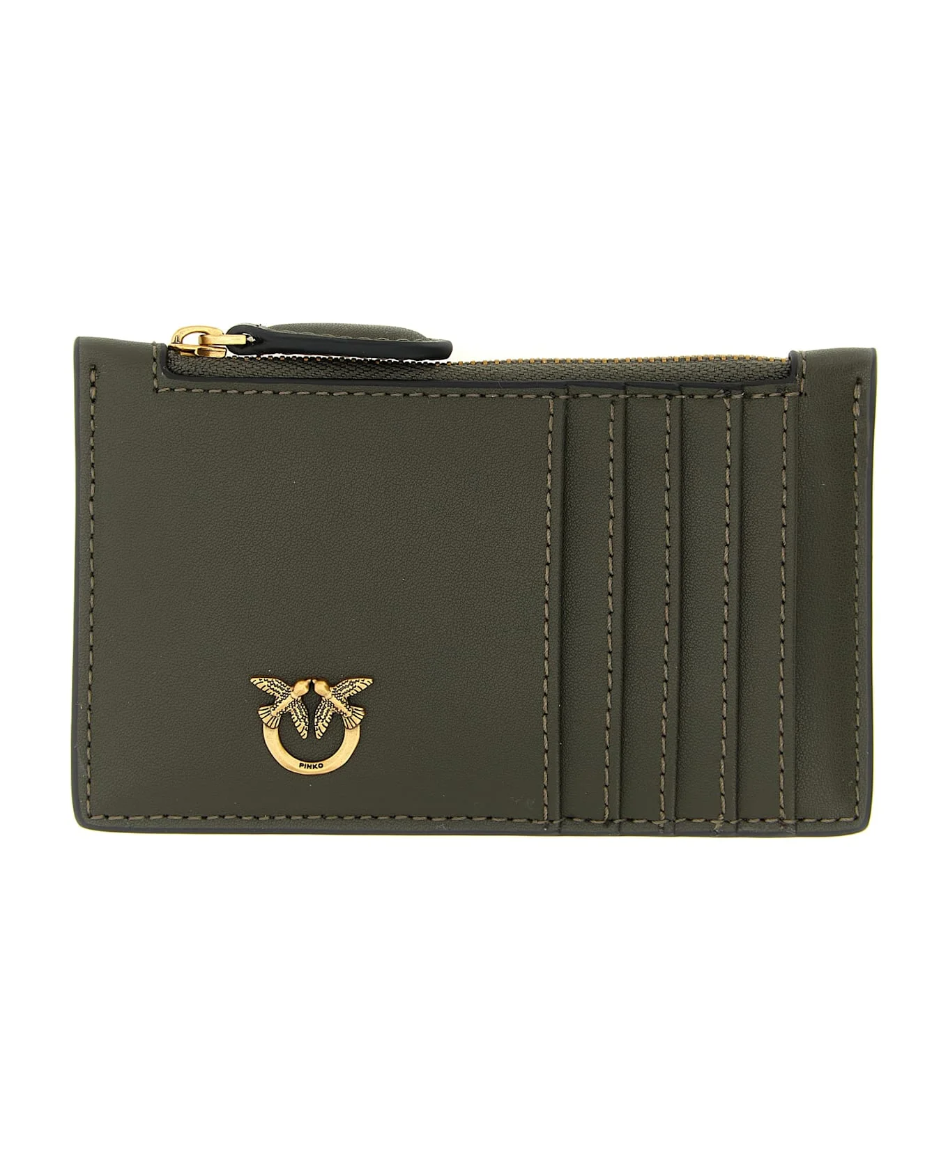'Airone' silk leather card holder, metal 'Love Birds Diamond Cut' logo plaque on the front, top zip closure, polycotton lining. Composition: 100% cow leather (Bos Taurus) Made in: China Color: Green Size and fit: - W 14 x H 8 x D 2 cm Model number: 100251A0F1K35Q