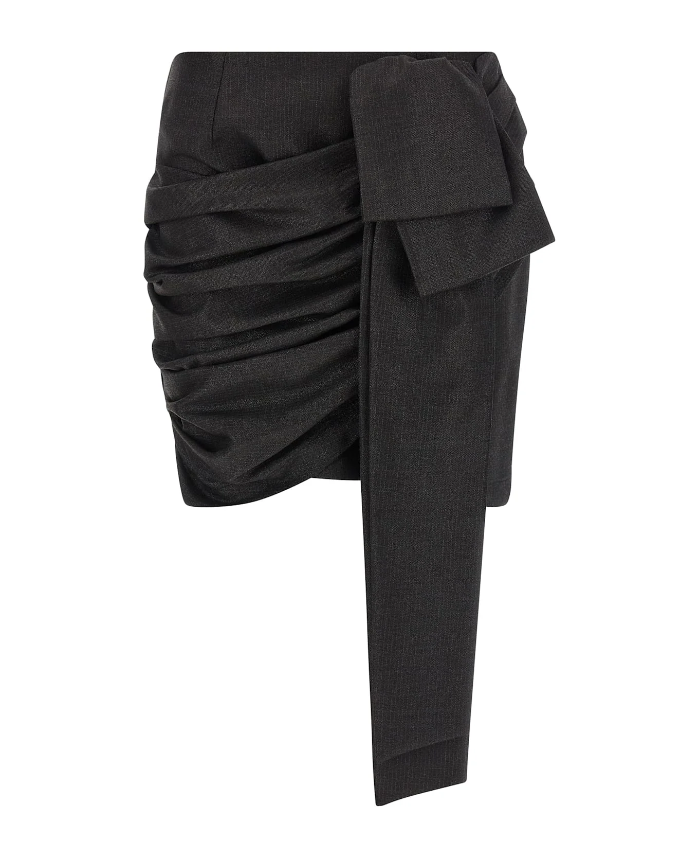 Mini 'Alejandrina' skirt in wool blend canvas worked with thin pinstriped metallic thread, draping and decorative band with front bow, back zip closure, lining. Composition: 92% wool 4% mz 4% polyamide Made in: Italy Color: Black Size and fit: - true to size fit Model number: 106144A305Z99
