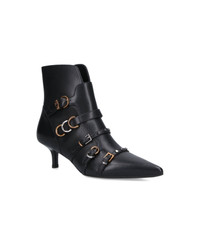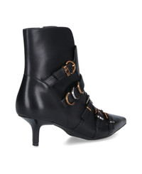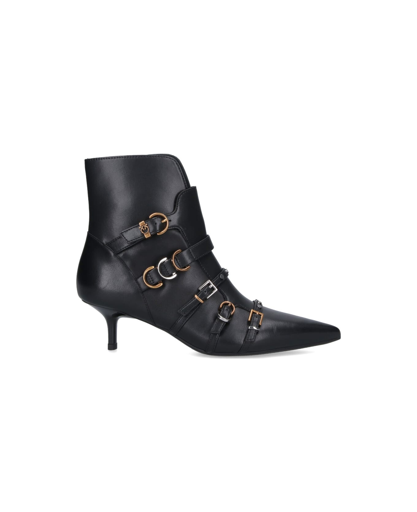 Pinko ankle boots in black leather with pointed toe, all-over buckle detail, side zip closure, stiletto heel, rubber sole. Composition: Upper: 54% Cow Leather, 46% Polyurethane, Lining: 100% Cow Leather, Sole: 100% Rubber Made in: China Color: Black Model number: SD0361P087Z99