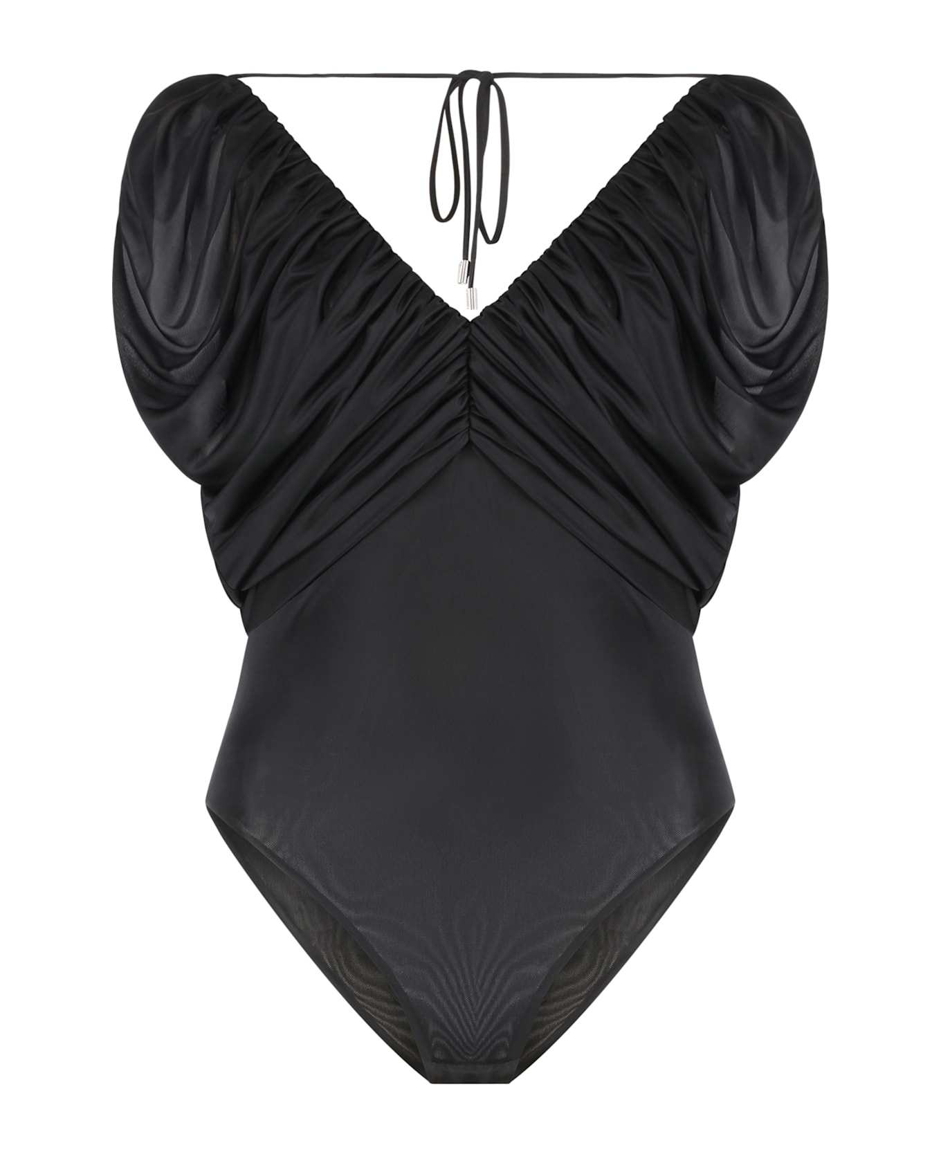 Gathered item rear lace-up closure at neck 100% polyester, 92% nylon, 3% elastane Composition: 100% % Polyester, 92% % Nylon, 3% % Elastane Made in: Italy Color: black Model number: 104958A2F1Z99