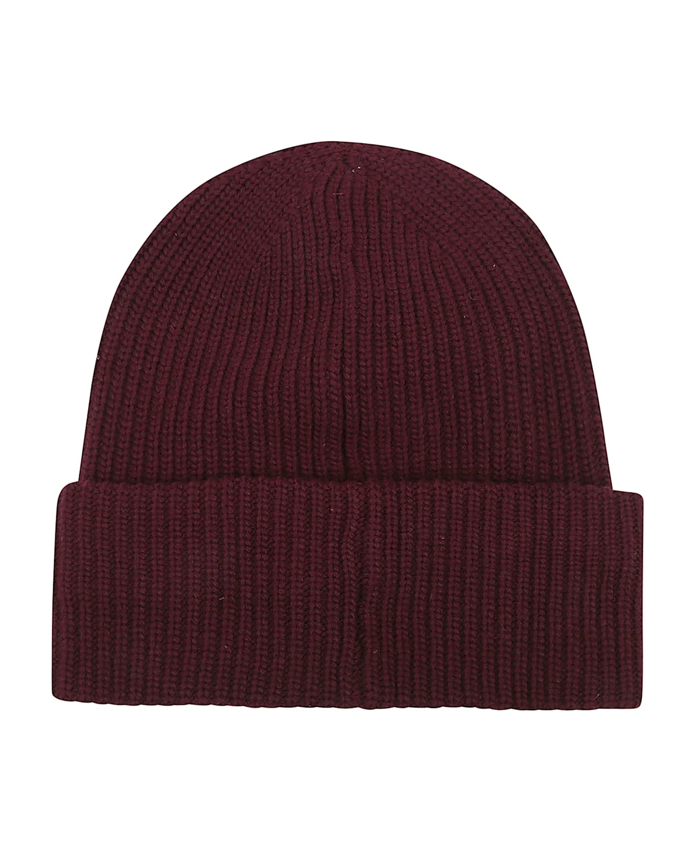 Beanie-style hat made from a soft wool, cashmere, and viscose blend by PINKO. All-over ribbed knit. Featuring a tone-on-tone label with PINKO lettering logo on the front. Made in: China Color: Bordeaux Model number: BOSNIA105993A2Z4R57