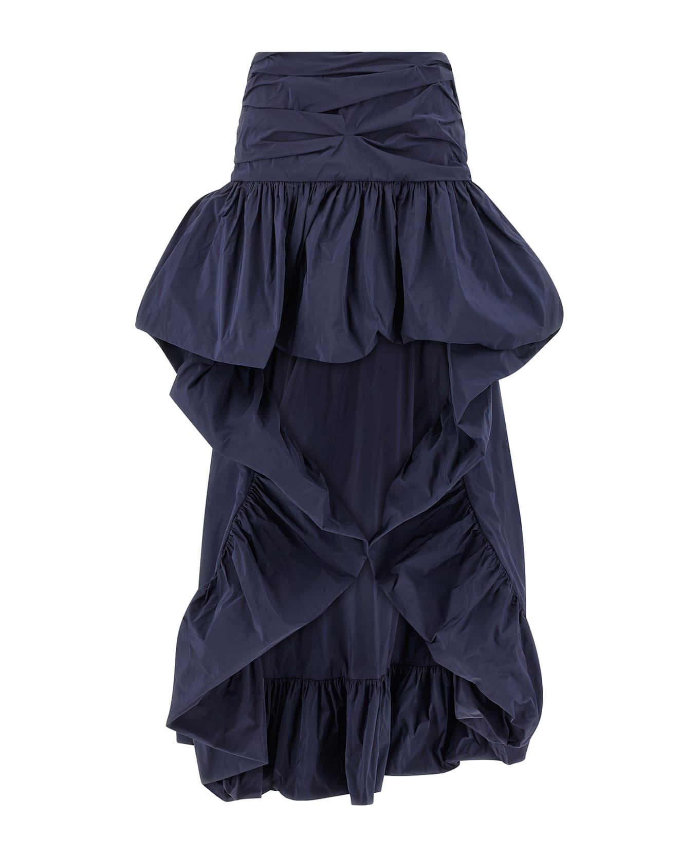 'Dondolo' taffeta miniskirt with slightly ruffled front, asymmetrical hem, ruffled piping, side zip closure. Composition: 100% polyester Made in: Tunisia Color: Blue Size and fit: - true to size fit Model number: 105642Y3LEG41