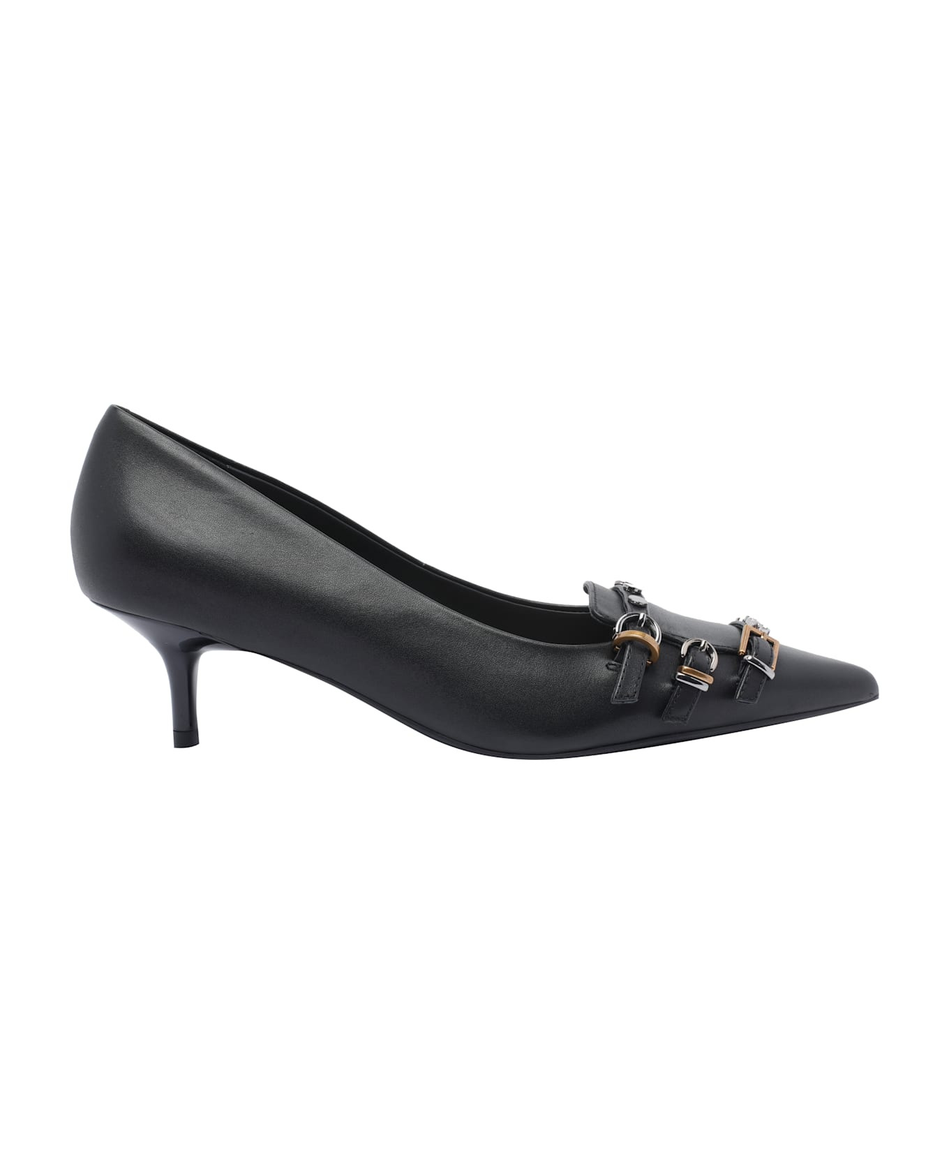 LOW LEATHER PUMPS WITH STRAPS AND STUDS