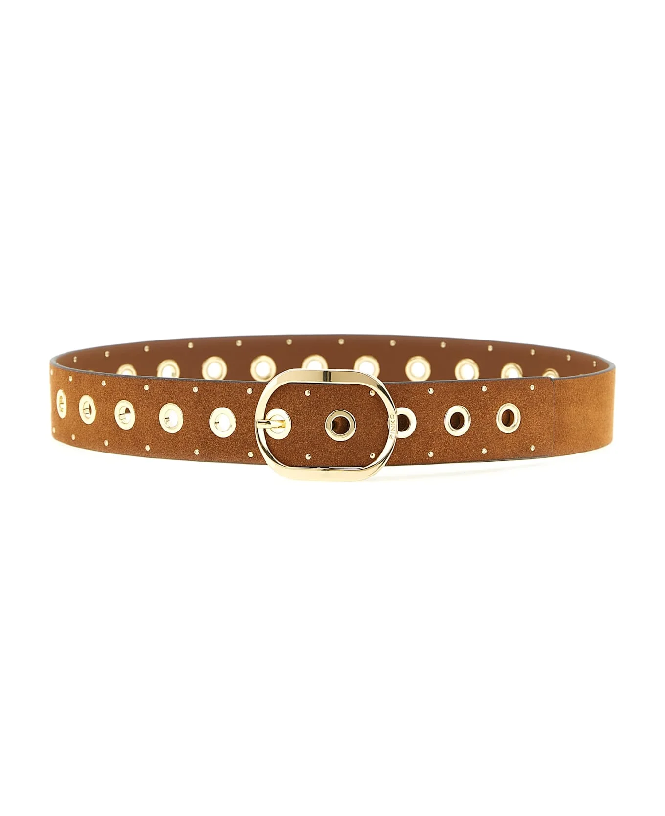 Suede effect crust leather belt with micro metal studs and cut-out studs, metal buckle. Composition: 100% lamb leather (Ovis aries) Made in: China Color: Brown Size and fit: - H 4 cm Model number: 106408A35RL17L