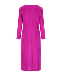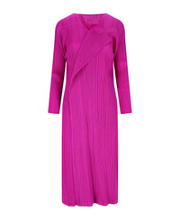 Pleats Please pleated 'Light Wave' midi dress in pink fabric with pleated pattern, asymmetrical V-neck, draped panel detail, side pocket, straight hem. Composition: 100% Polyester Made in: Japan Color: PINK Size and fit: - vestibilita regolare Model number: PP56JH48322