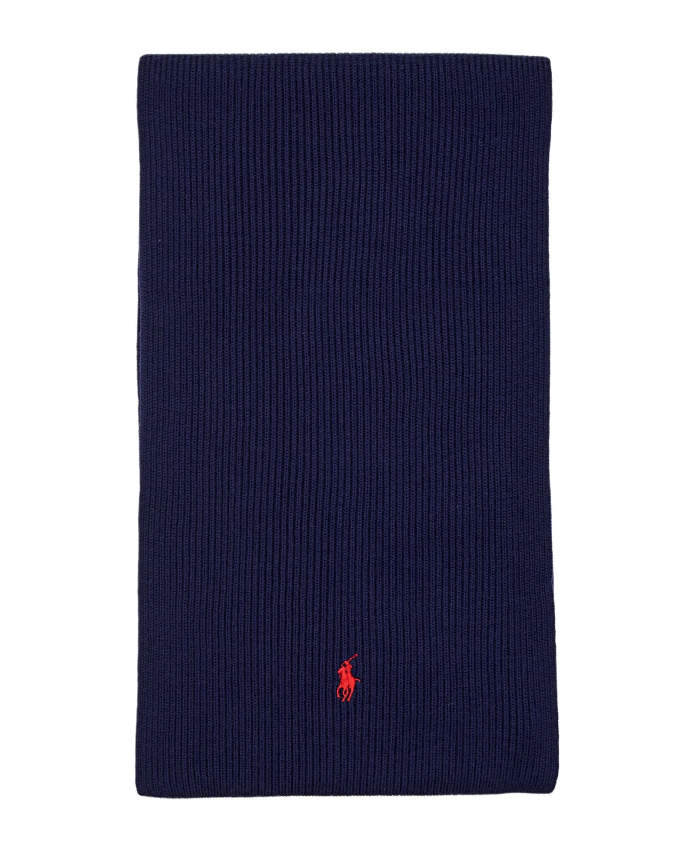 Knit with worsted wool yarns that are specially treated for easy care while maintaining durability and softness, this scarf is finished with Ralph Lauren's signature embroidered Pony. Composition: 100% Wool Made in: Vietnam Color: Blue Model number: 710886136002HUNTERNAVY