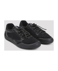 Prada Black Allacciate Sneakers. Pure black polyester fabric, round toe, top lace-up fastening, top drawstring details, patch logo on the upper, perforated fabric details on the upper, tonal rubber sole. Made in: Italy Color: Nero Model number: 2EE468FG0003ZM0F0002