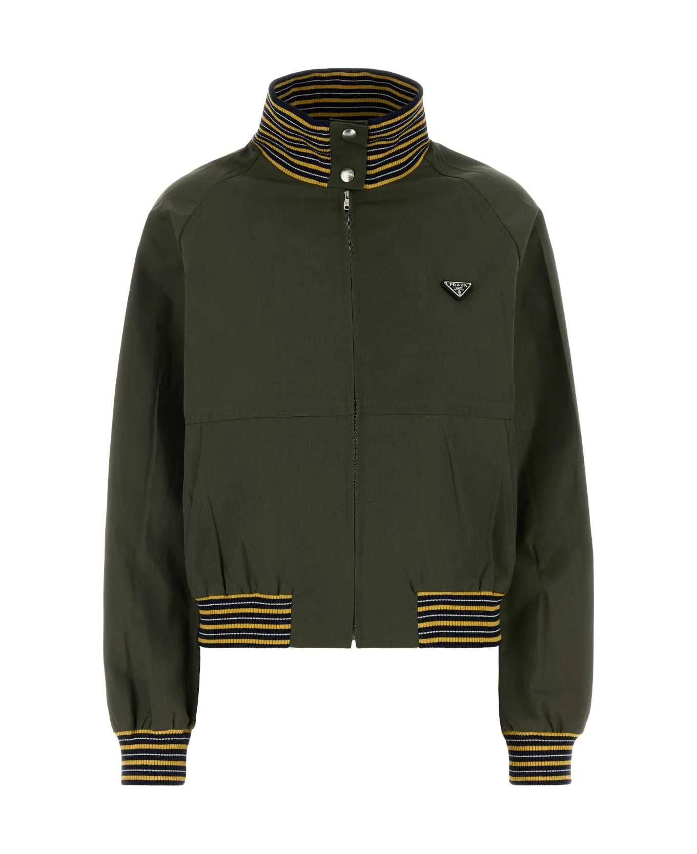 Army Green Poplin Bomber Jacket from Prada Made in: Italy Color: MILITARE Model number: P8032SOOO187PF0161