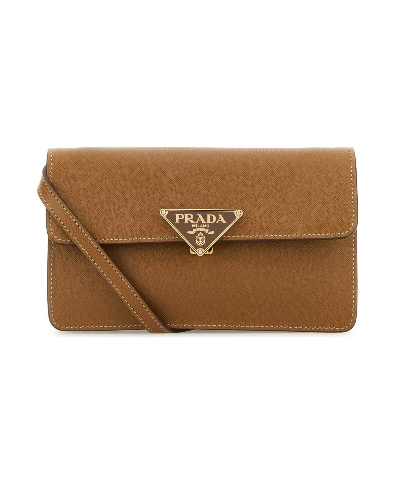 Biscuit Leather Mini Crossbody Bag from Prada Made in: Italy Color: CARAMEL 0 C Size and fit: - Width: 19,5 cm Height: 11,5 cm Depth: 5 cm Min shoulder strap length: 50 cm Max shoulder strap length: 60 cm Model number: 1BD386VOTONZVF04N5