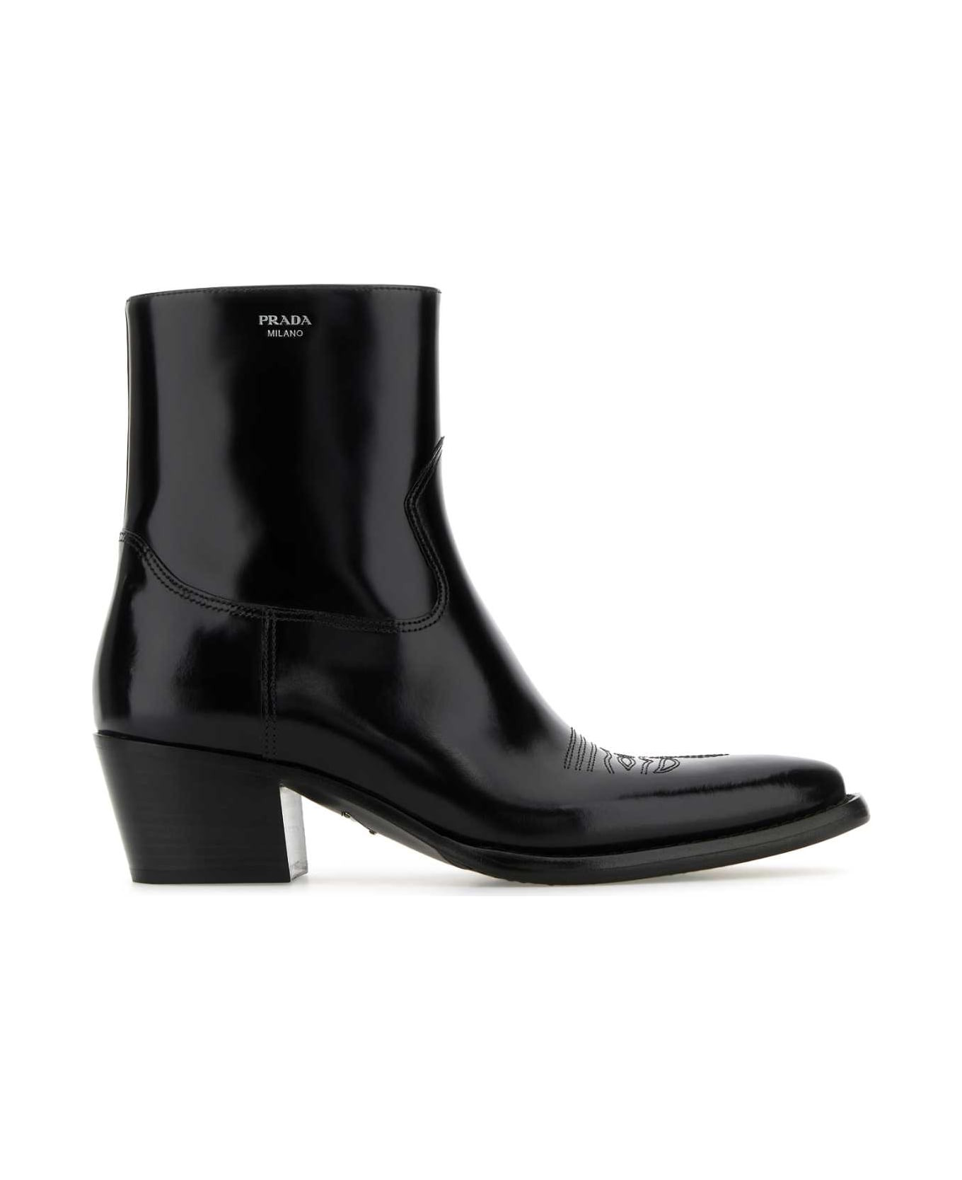 Black Leather Boots from Prada Made in: Italy Color: NERO Size and fit: - Heel height: 5 cm Model number: 1T050OF045055F0002