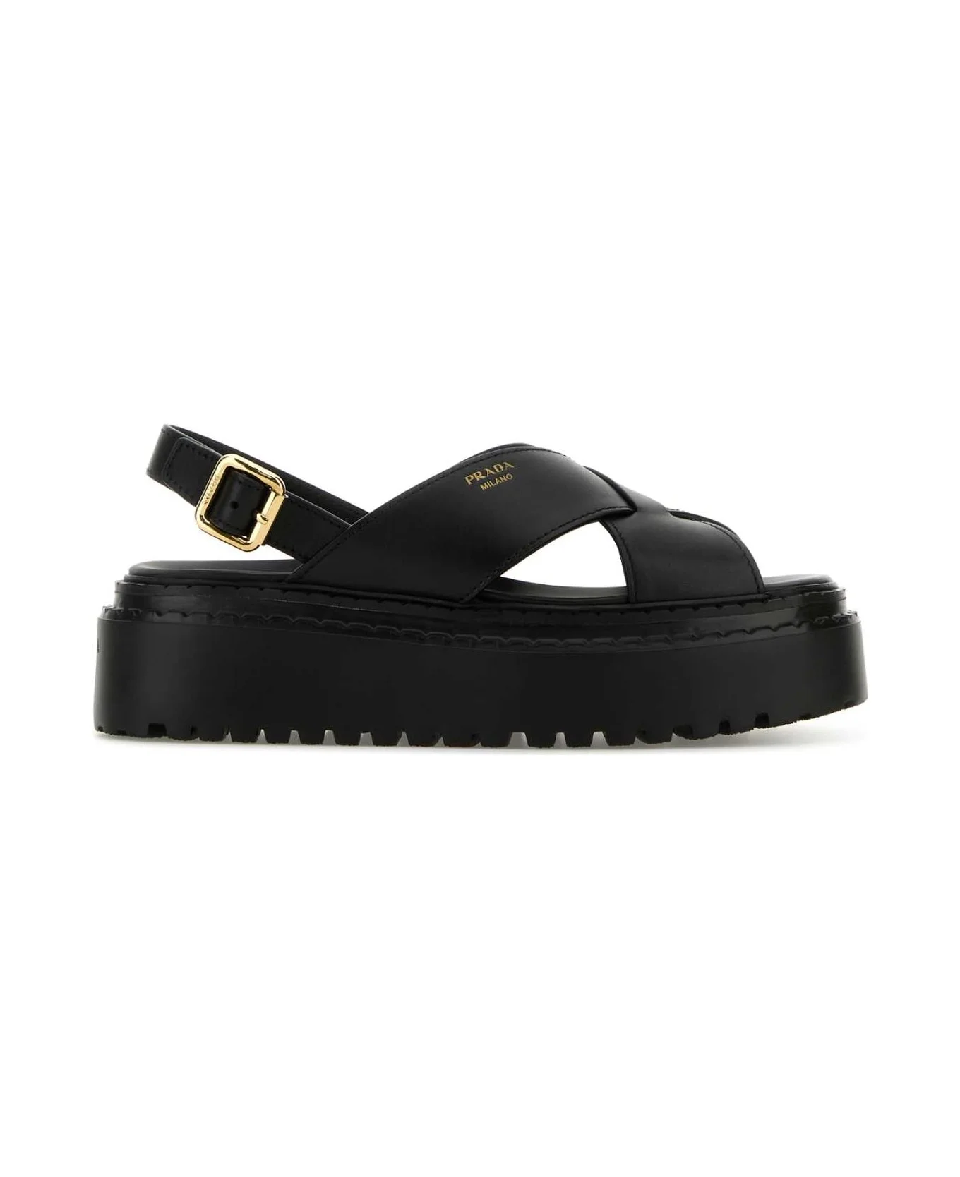 Black Leather Sandals from Prada Made in: Italy Color: NERO Size and fit: - Platform height: 4,5 cm Model number: 1X925NF0557V6F0002