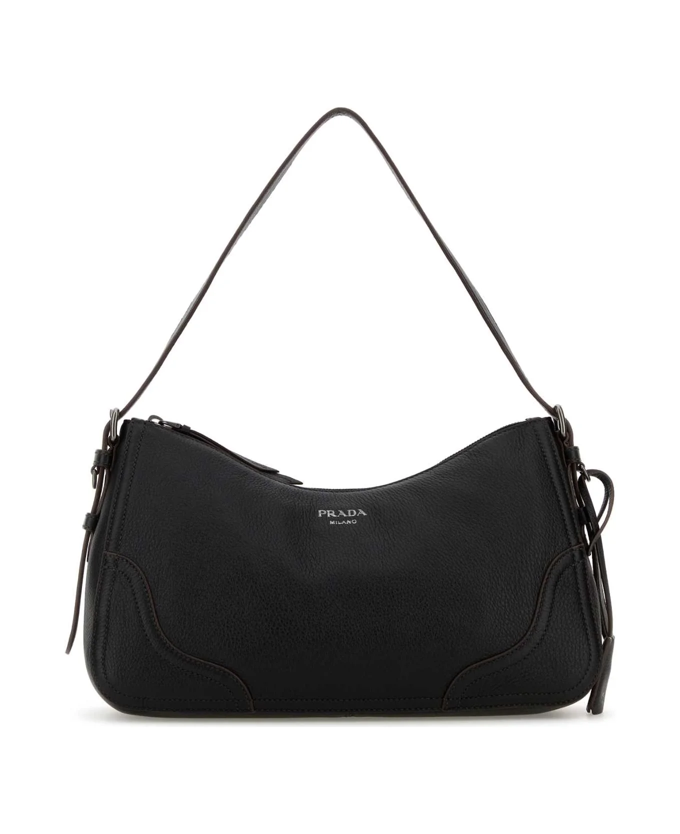 Black Leather Shoulder Bag from Prada Made in: Italy Color: NERO Size and fit: - Width: 37 cm Height: 18 cm Depth: 13 cm Min shoulder strap length: 13 cm Max shoulder strap length: 33 cm Model number: 1BC2802HIKF0002