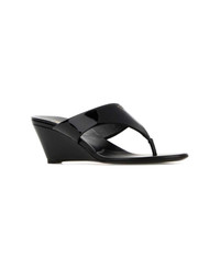 Black Leather Thong Mules