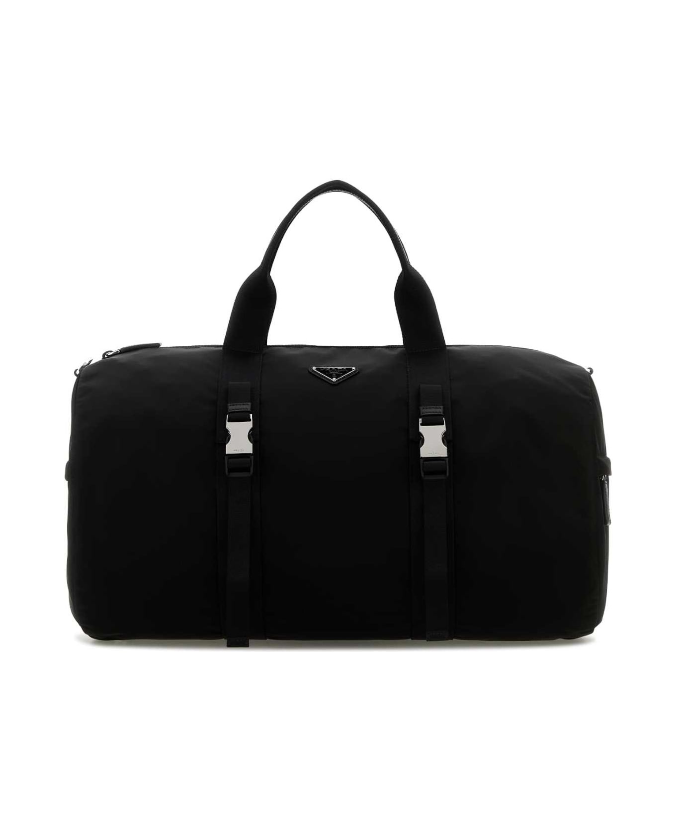 Black Nylon Travel Bag from Prada Made in: Italy Color: NERO Size and fit: - Width: 50 cm Height: 27 cm Depth: 27 cm Handle height: 14 cm Min shoulder strap length: 40 cm Max shoulder strap length: 65 cm Model number: 2VC015VMON2DMGF0002