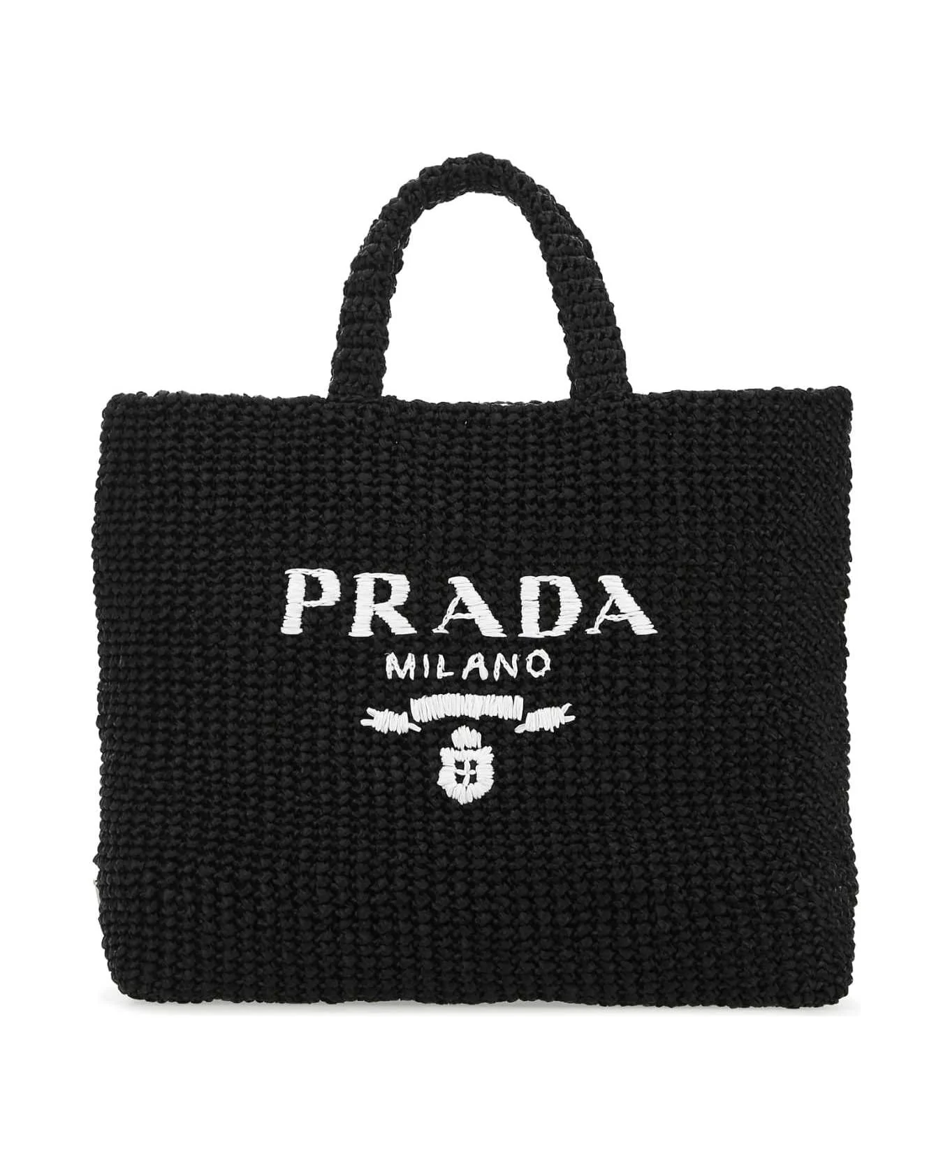 Black Raffia Shopping Bag from Prada Made in: Italy Color: F0002 Size and fit: - Width: 40 cm Height: 35 cm Depth: 14 cm Handle height: 14 cm Model number: 1BG392VOOL2A2TF0002