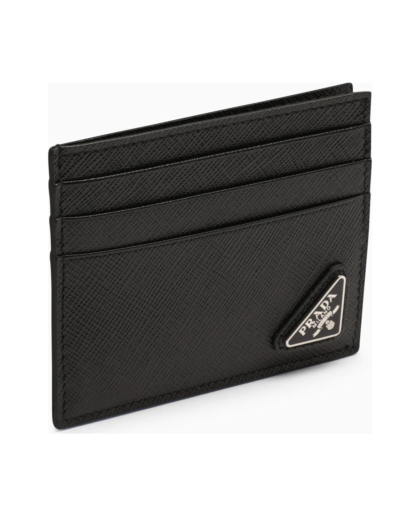 Credit card holder by Prada in black Saffiano leather featuring six card slots and logo detail on metal plate on the front. Composition: 100% Calf leather Made in: Italy Color: Nero Size and fit: - Width 10 cm x Height 8 cm x Depth 1 cm Model number: 2MC223QHH