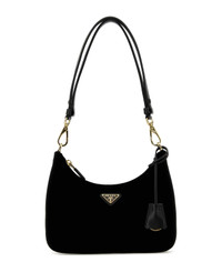 Black Velvet Mini Prada Re-edition Shoulder Bag