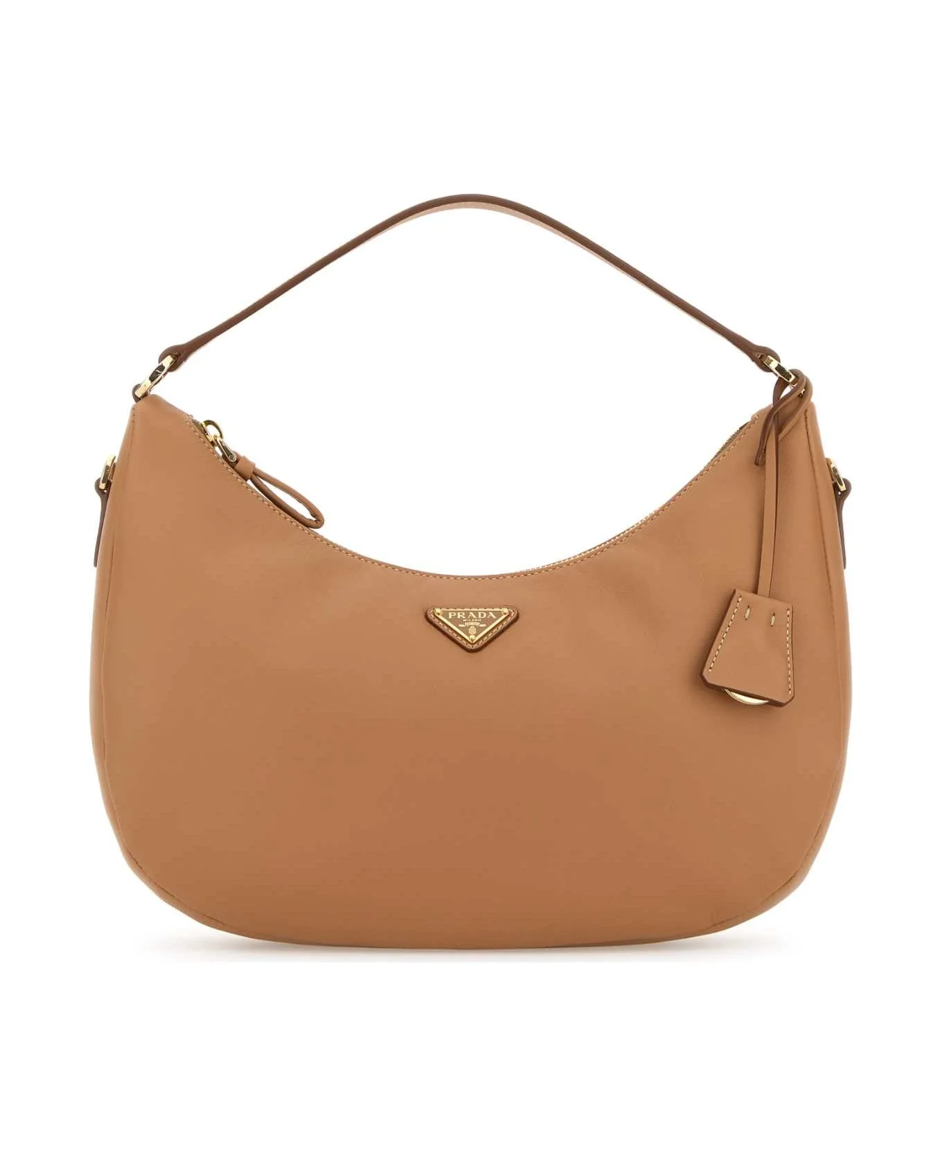 Camel Leather Handbag from Prada Made in: Italy Color: NATURALE Size and fit: - Width: 29 cm Height: 15 cm Depth: 9 cm Handle height: 16 cm Min shoulder strap length: 47 cm Max shoulder strap length: 57 cm Model number: 1BC2732CYSF0018