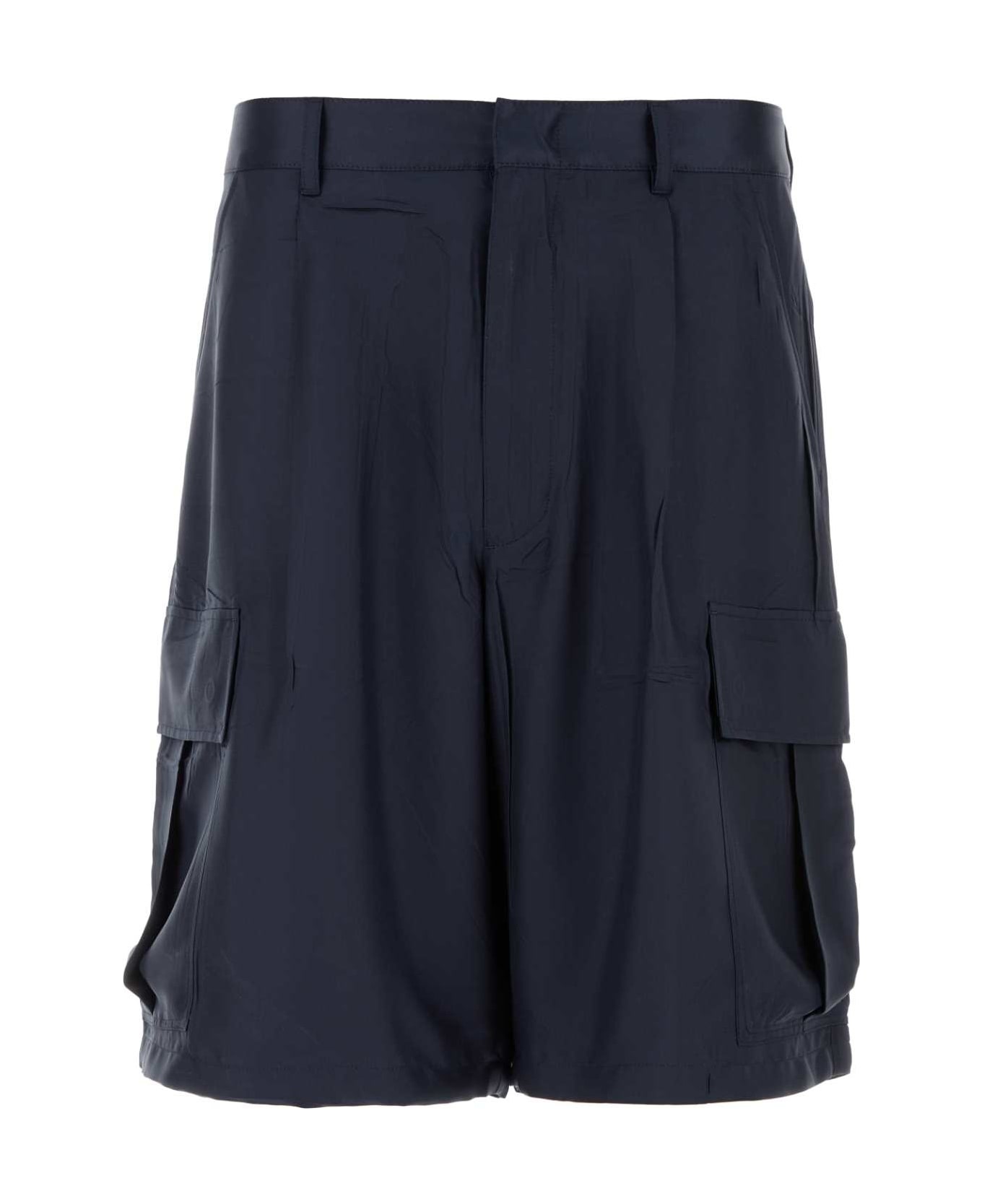 Dark Blue Silk Bermuda Shorts
