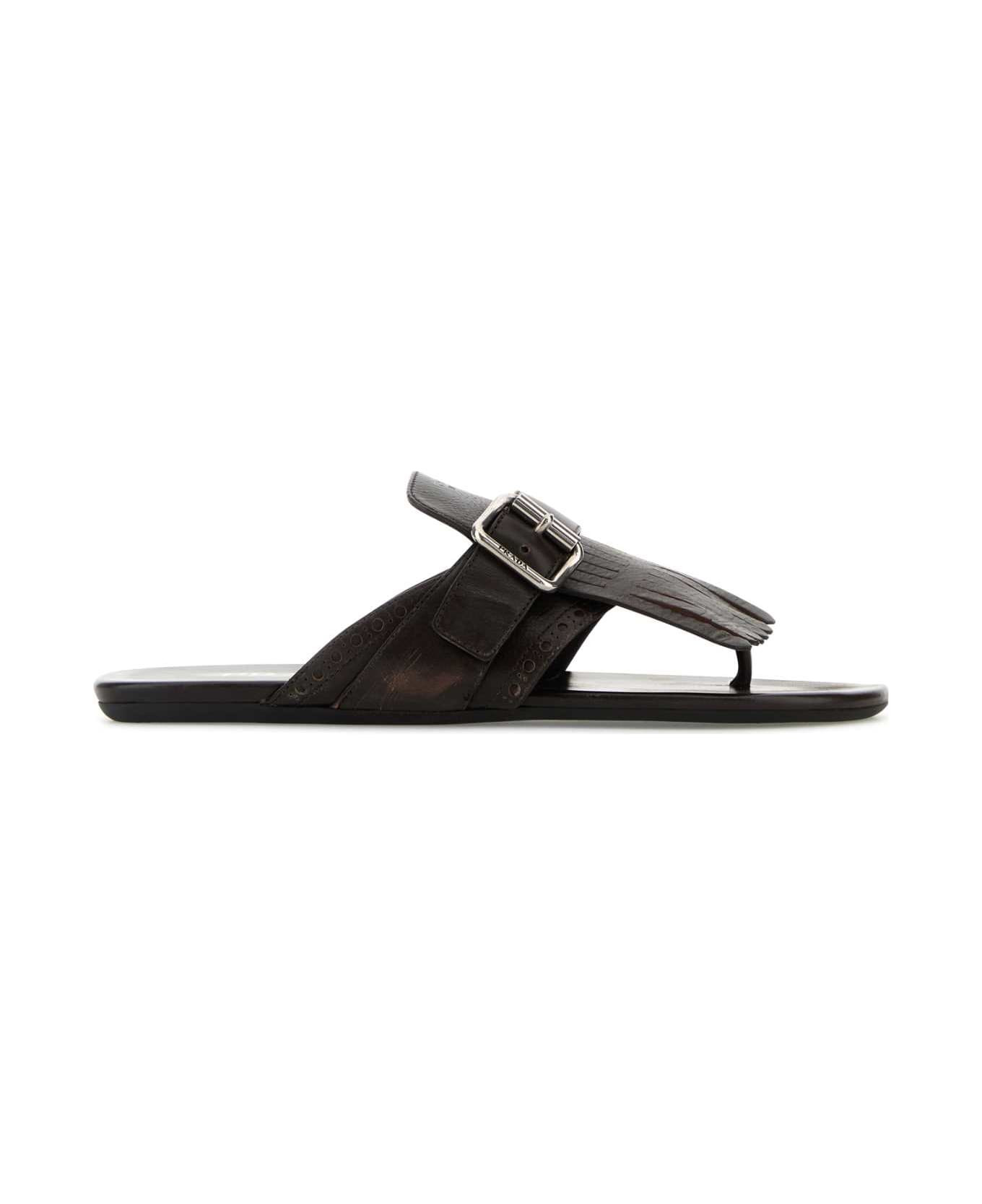 Dark Brown Leather Shuffle Thong Slippers from Prada Made in: Italy Color: MORO Model number: 1Y961NFA005070F0003