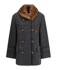 Double-breasted Caban With A Shearling Trim
