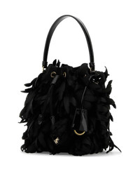 Embellished Satin Mini Bucket Bag from Prada Made in: Italy Color: NERO Size and fit: - Width: 19 cm Height: 19 cm Depth: 12 cm Handle height: 13 cm Min shoulder strap length: 42 cm Max shoulder strap length: 53 cm Model number: 1BE067VWXM2C5RF0002