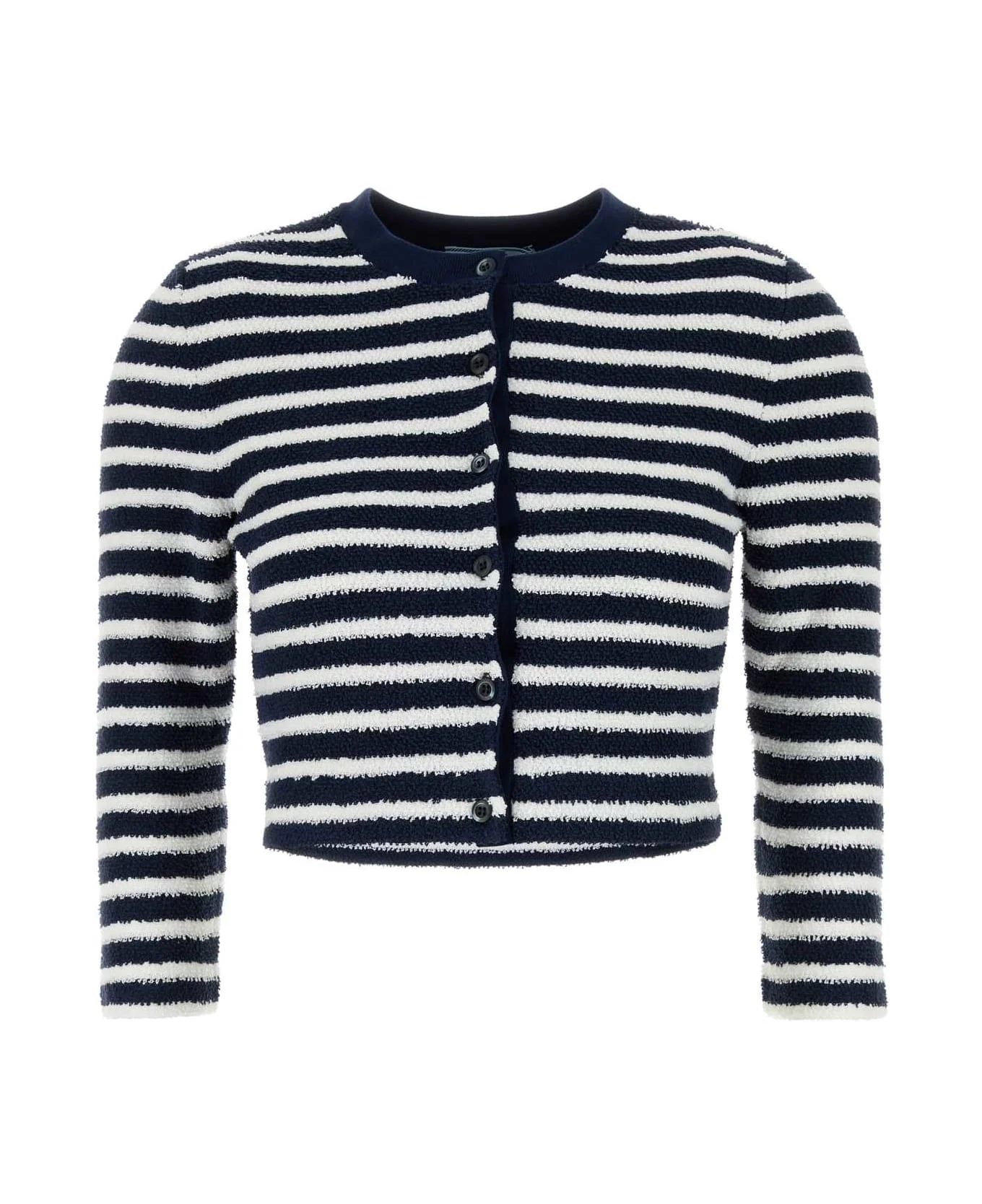 Embroidered Boucle Cardigan from Prada Made in: Italy Color: NAVY+NATURALE Model number: P25N49SOOO16VIF056H