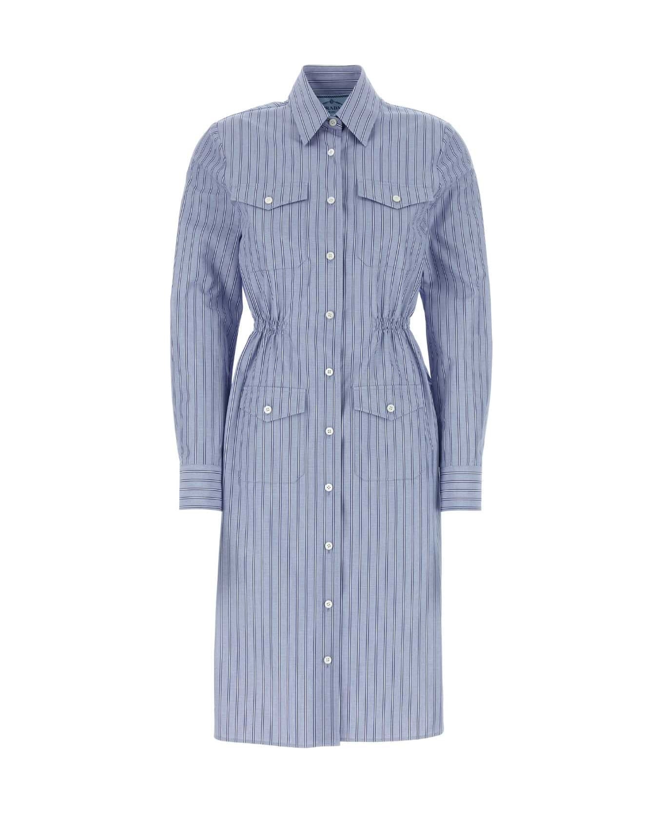Embroidered Chambray Shirt Dress from Prada Made in: Italy Color: BLEU Model number: P3N25RSOOO15ERF0008