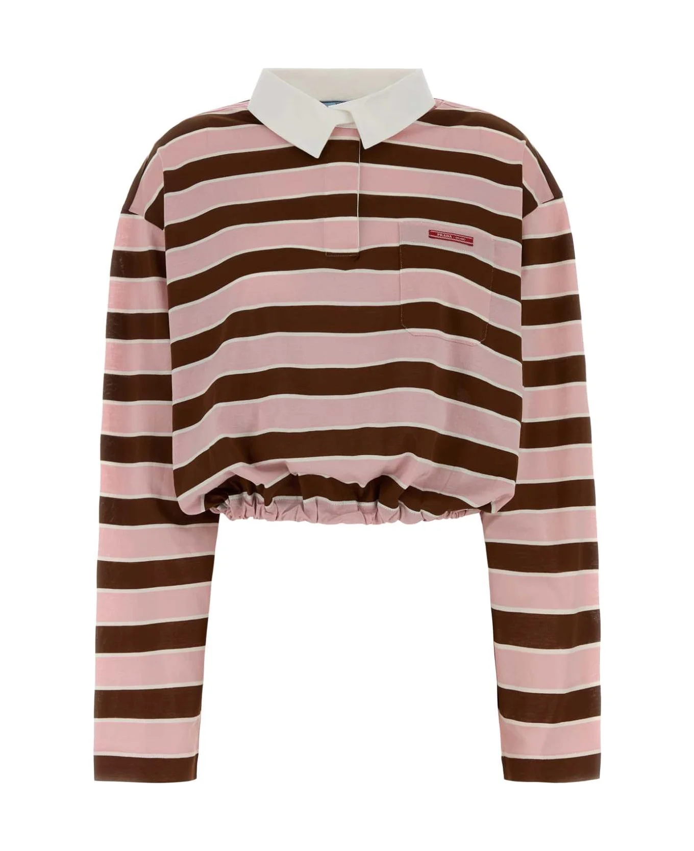 Embroidered Cotton Oversize Polo Shirt from Prada Made in: Romania Color: ALABASTRO+TABACCO Model number: 39661SOOO189PF05AB