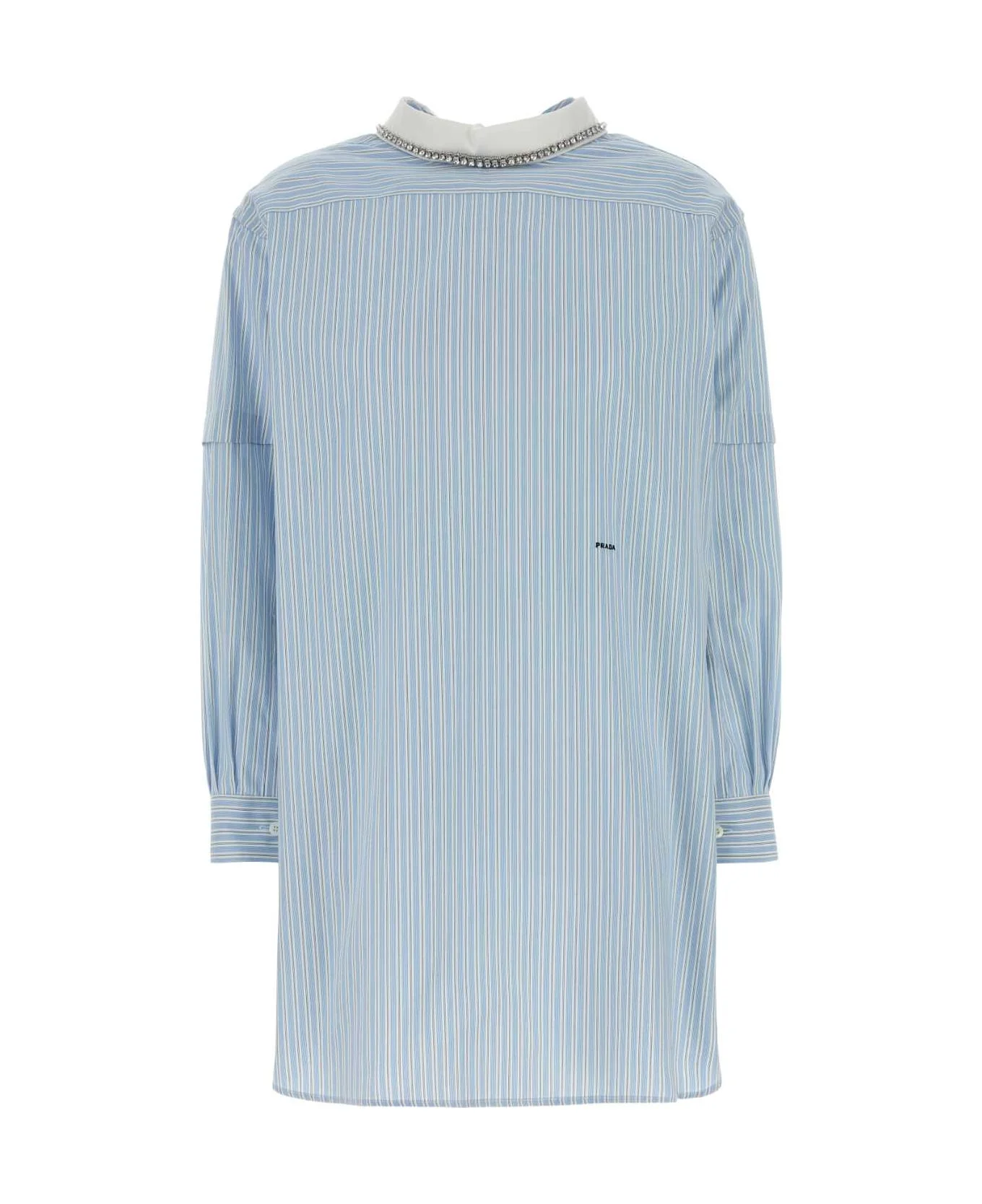 Embroidered Poplin Blouse from Prada Made in: Italy Color: CIELO+NERO Model number: P953NRSOOO17NDF0C9N