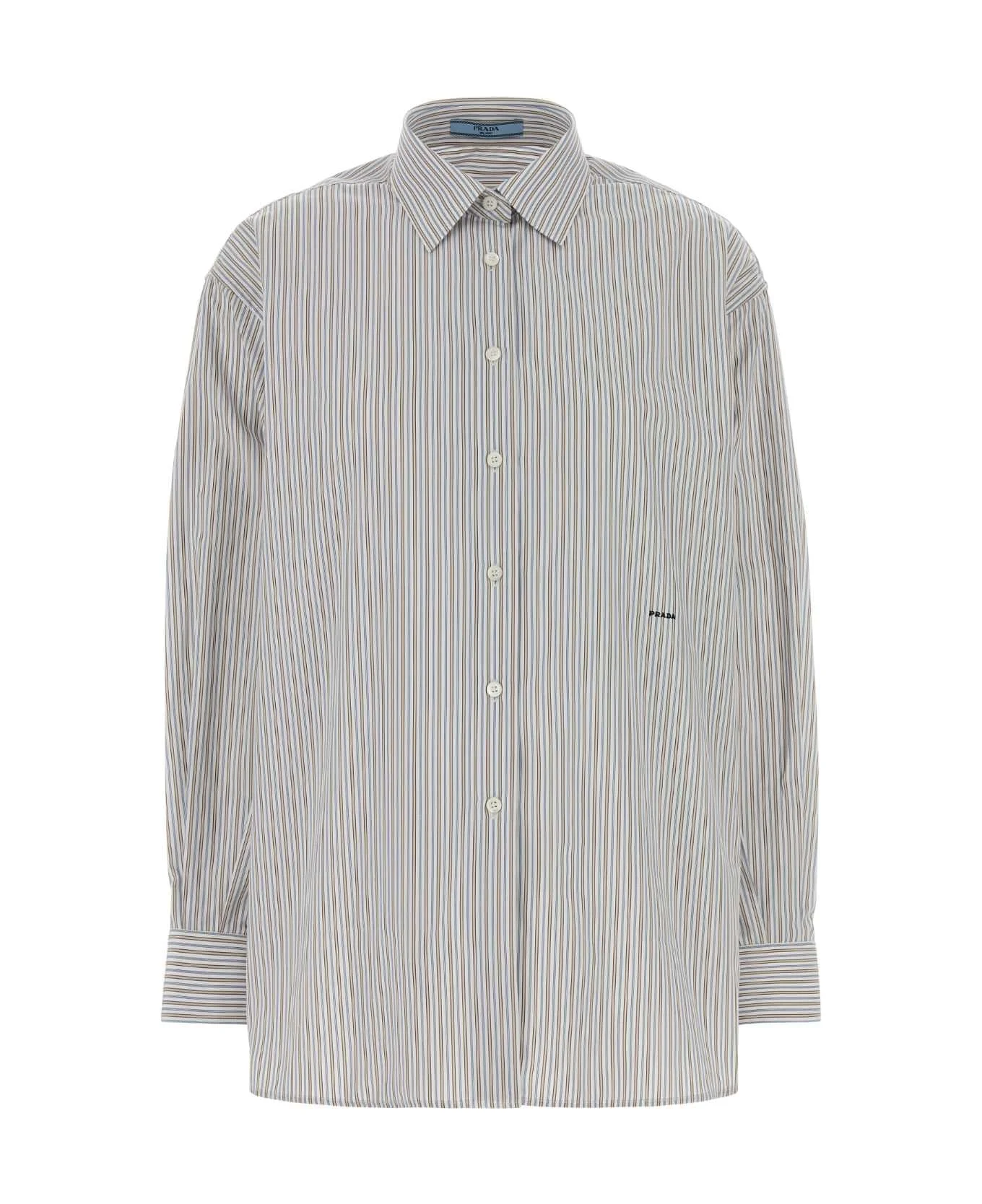 Embroidered Poplin Oversize Shirt from Prada Made in: Romania Color: TABACCO+BLU Model number: P493IRSOOO18RGF0S4M