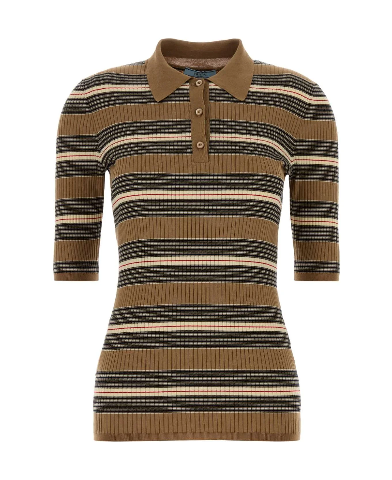 Embroidered Stretch Cotton Blend Polo Shirt from Prada Made in: Italy Color: CAMMELLO Model number: P24R2USOOO17KJF0040