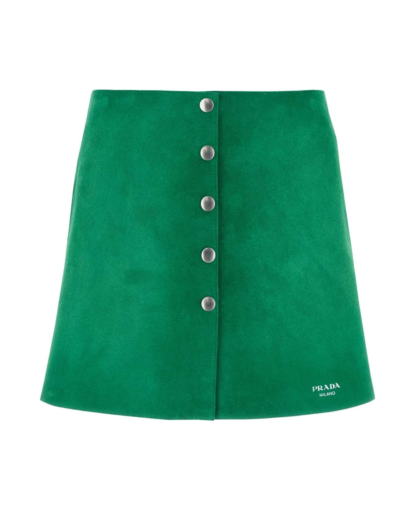 Grass Green Suede Mini Skirt from Prada Made in: Italy Color: MANGO Model number: 51897SOOO16QDF0458