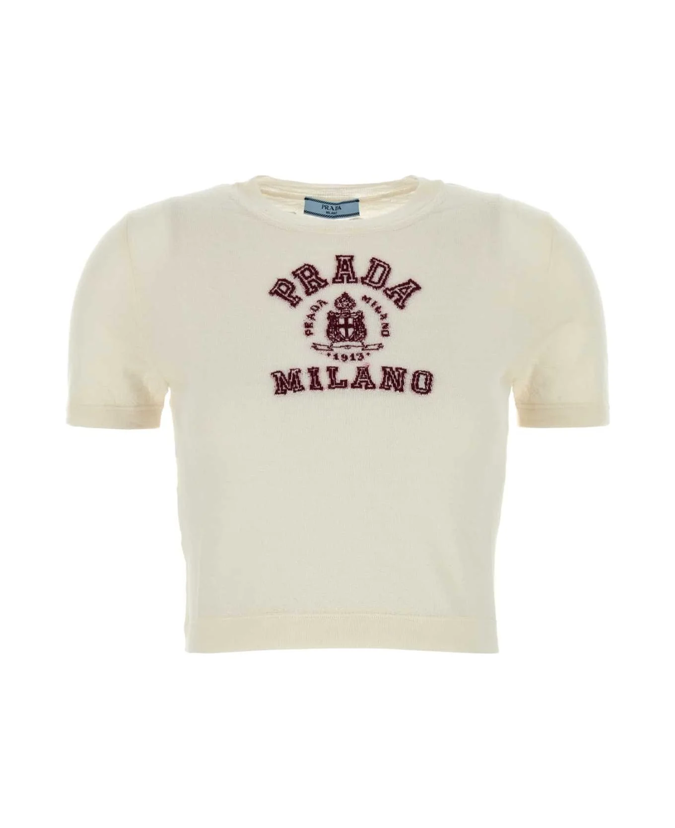 Ivory Cashmere Sweater from Prada Made in: Italy Color: BIANCO+AMARANTO Model number: P24M2MSOOO16NZF0X97