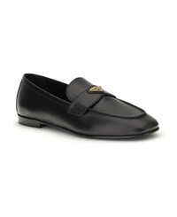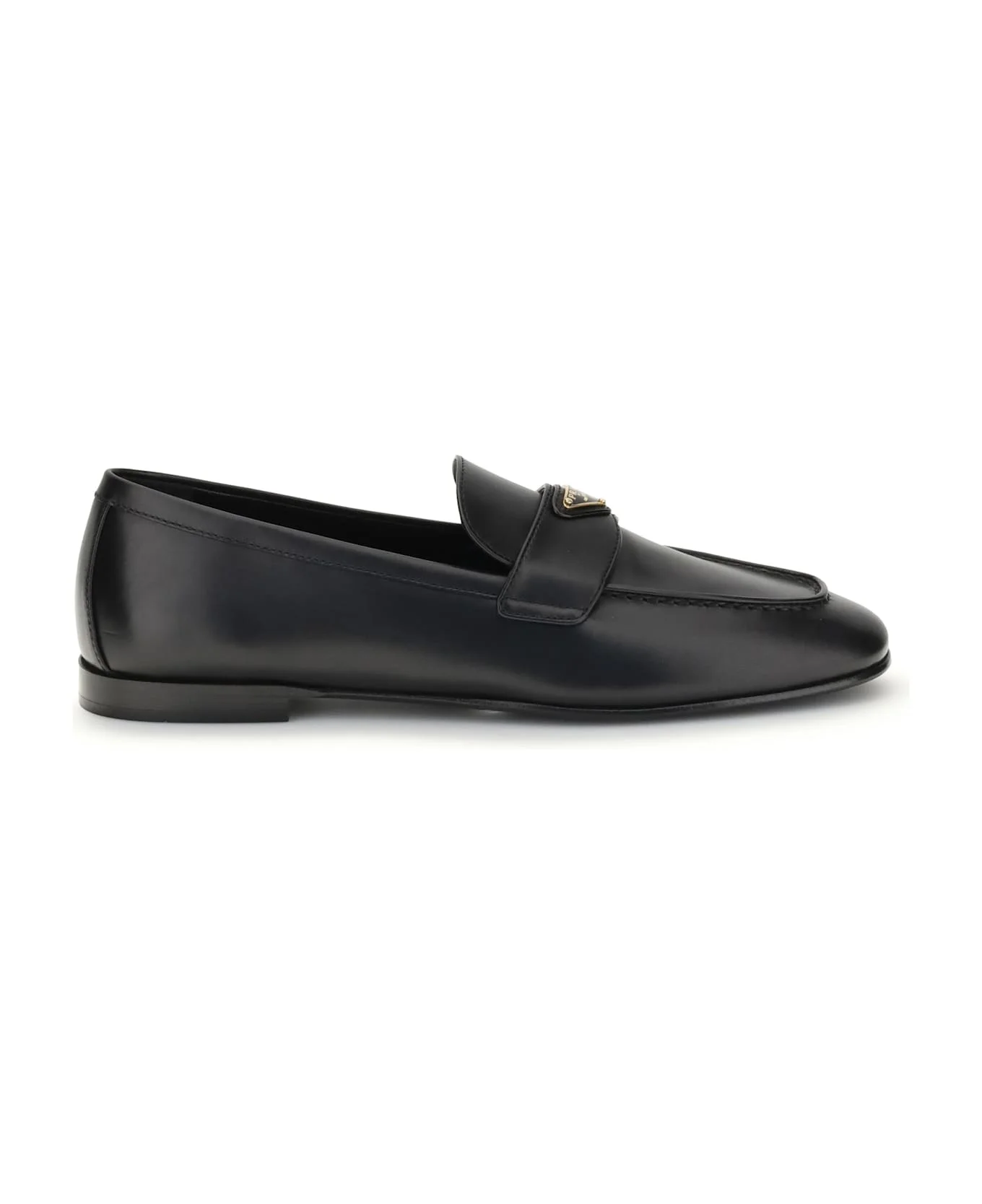 Prada's smooth leather loafers combine classic elegance and contemporary identity. characterized by a flat sole and squared toe, they feature a tray finished with the iconic logoed triangular plaque, a distinctive detail that signs the essential design with understated sophistication. Composition: 100% % Calf Leather Bos Taurus, 100% % Rubber Made in: Italy Color: NERO Model number: 1D147OF010070F0002