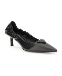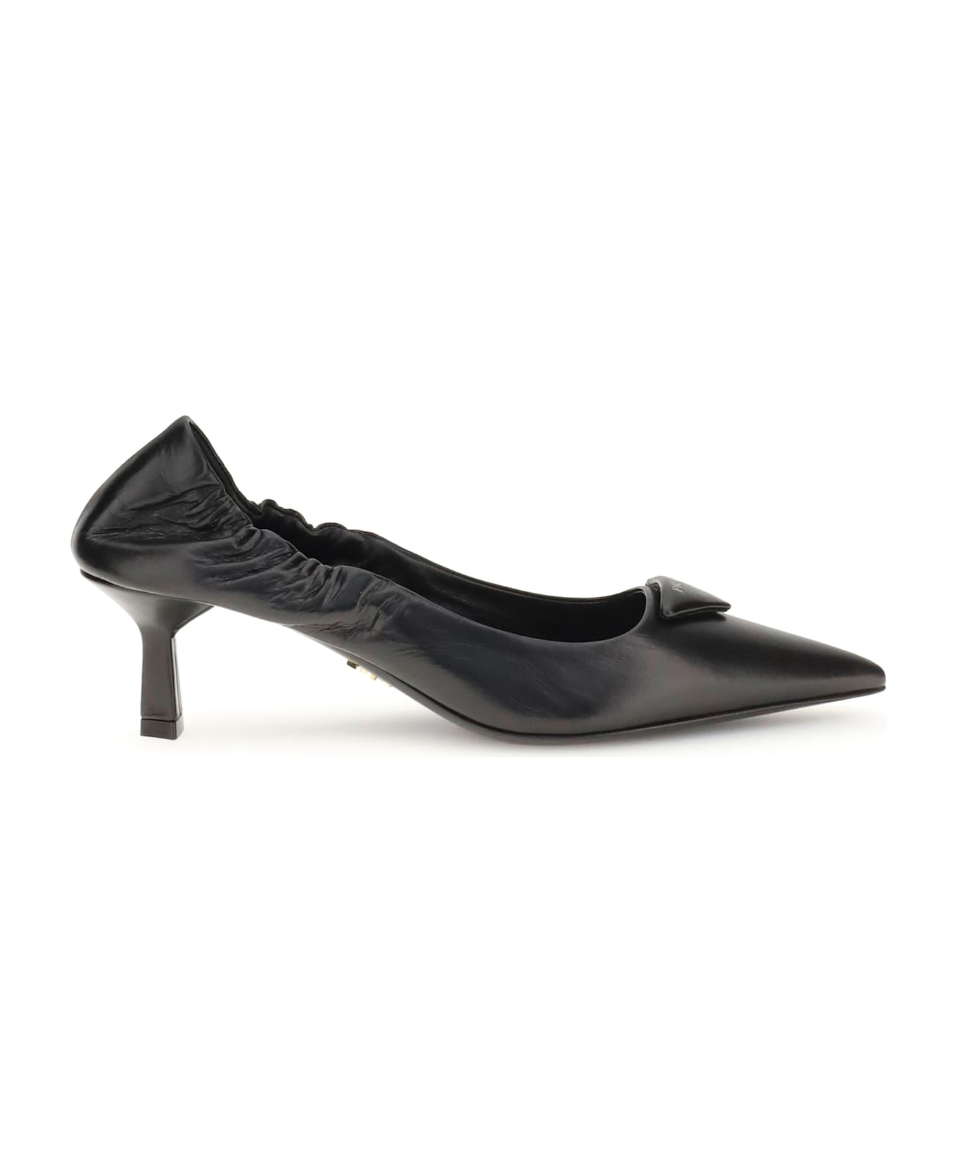 Prada's logo pumps are made of leather and feature a soft, tapered silhouette. the pointed toe model features a deconstructed design, enhanced by an elastic back that ensures comfort and fit. the architectural heel, inspired by the geometry of prada's iconic triangle, completes the look with a modern and distinctive touch, while the triangular logo on the front elegantly signs the model. Composition: 100% % Calf Leather Bos Taurus Made in: Italy Size and fit: - 5.5 cm Model number: 1I188OF055070F0002