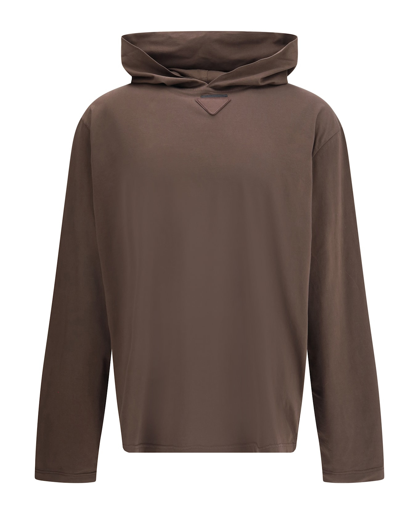 Prada's lightweight hoodie is a garment with a modern, minimalist allure. the triangular logo patch on the front adds an iconic and recognizable detail, while the lightweight fabric ensures comfort and versatility, ideal for a casual yet sophisticated look. Composition: 100% % Cotton Made in: Romania Model number: UJL46CSOOO17Z3F0324