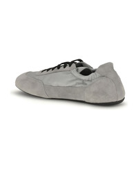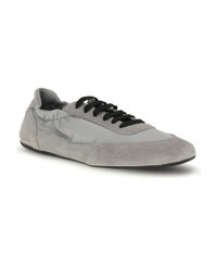 Prada's sneakers feature a round toe and suede details, with front lace-up closure for a comfortable fit. the brand's iconic monogram can be seen in contrast on the front, while the elasticized ankle lap ensures added comfort. the flat rubber sole provides stability and durability, completing the look with a distinctive style touch. Composition: 100% % Rubber, 100% % Calf Leather Bos Taurus Made in: Italy Model number: 1E959NF005D7CF0424