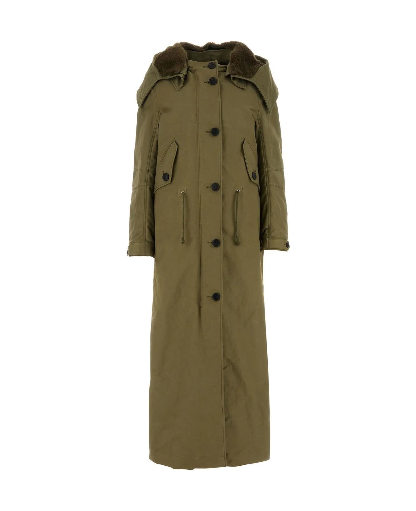 100% Polyamide - Inner padded - Long sleeves - Drawstring waist - Male fit - Stand-up collar - Wrist with lace and button - Zip and button closure - Detachable hood with buttons - Internal hood with removable wool fleece, anchored with buttons - The model is 180 cm tall and wears size 38 - Treated fabric, worn look Color: Green Model number: 29216013PGF0161